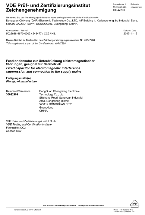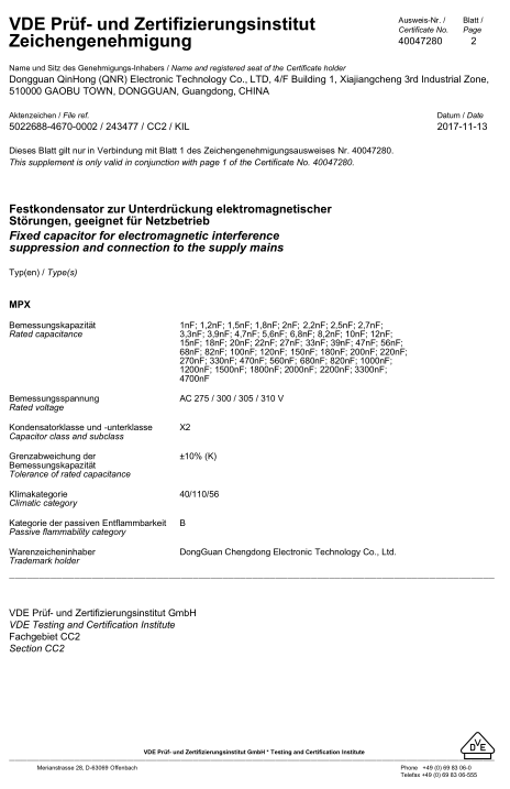您當前的位置:首頁資質(zhì)證書X2電容  ? QNRX2-VDE-證書